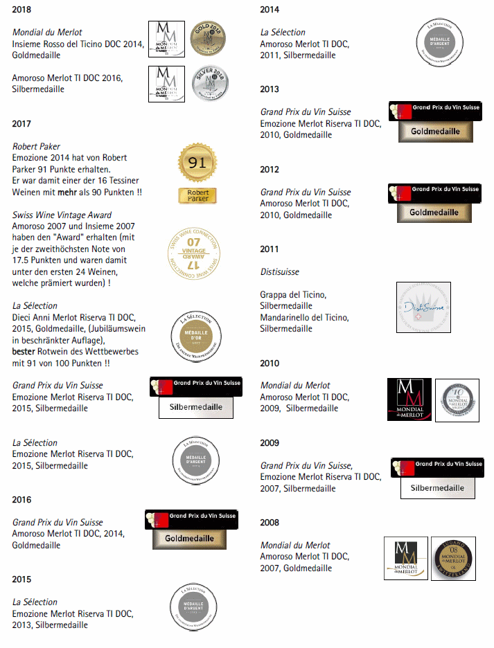 Unsere Weine gewinnen regelmässig Medaillen, das zeigt unsere Qualität und vor allem auch unsere Konstanz !